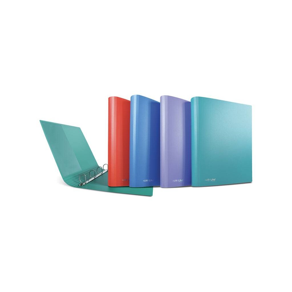Raccoglitore ad anelli SEI Like: formato esterno 22 X 30 cm, dimensione dorso dorso 17 mm, numero anelli 4 anelli, forma anello anelli a “D”, colore assortito