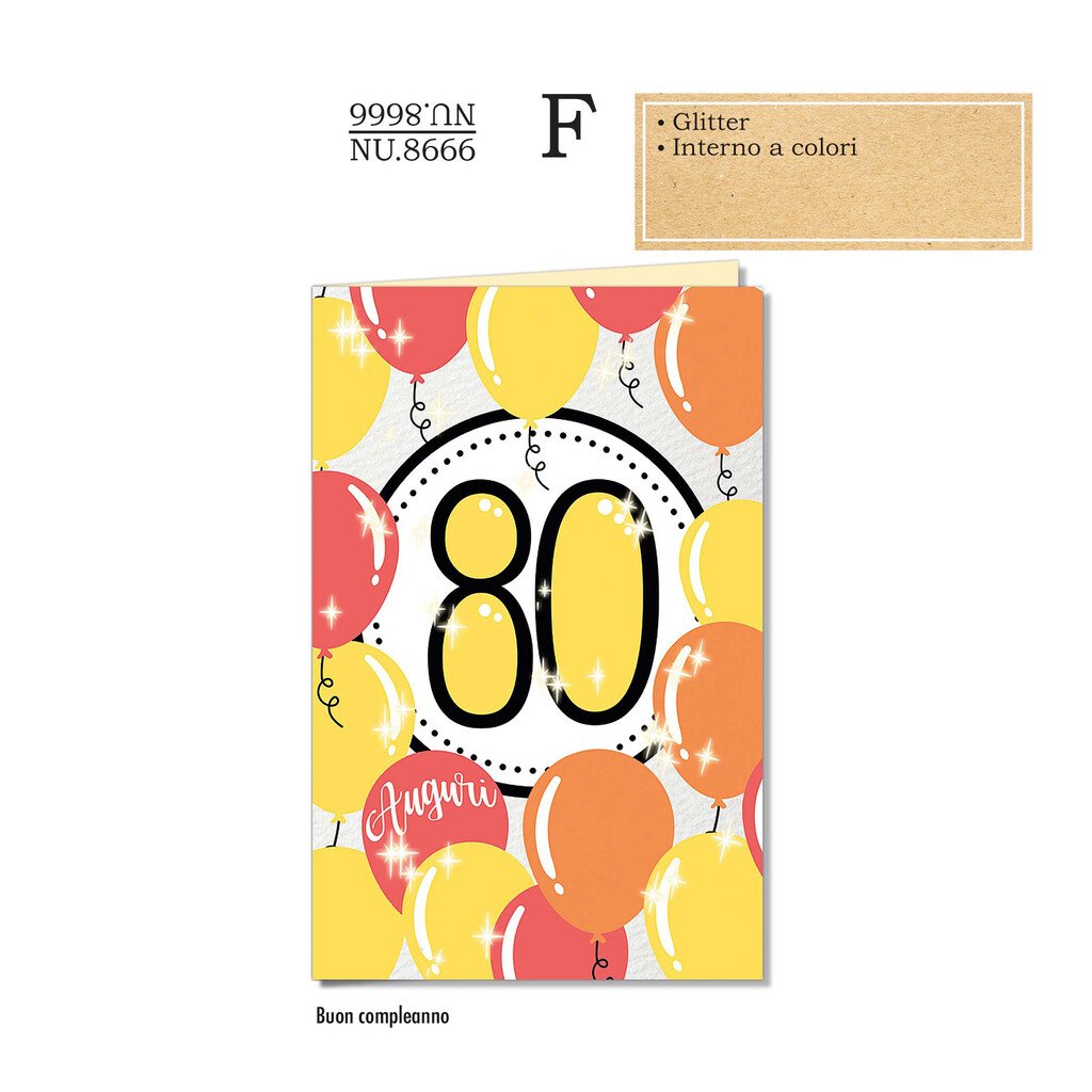 Biglietto augurale Cromo N.B.: tema augurale 80 anni, fantasia palloncini