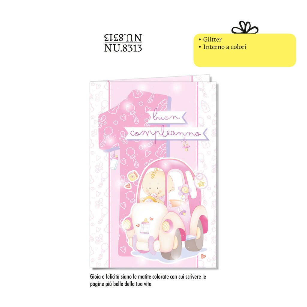 Biglietto augurale Cromo N.B.: tema augurale compleanno, fantasia femmina