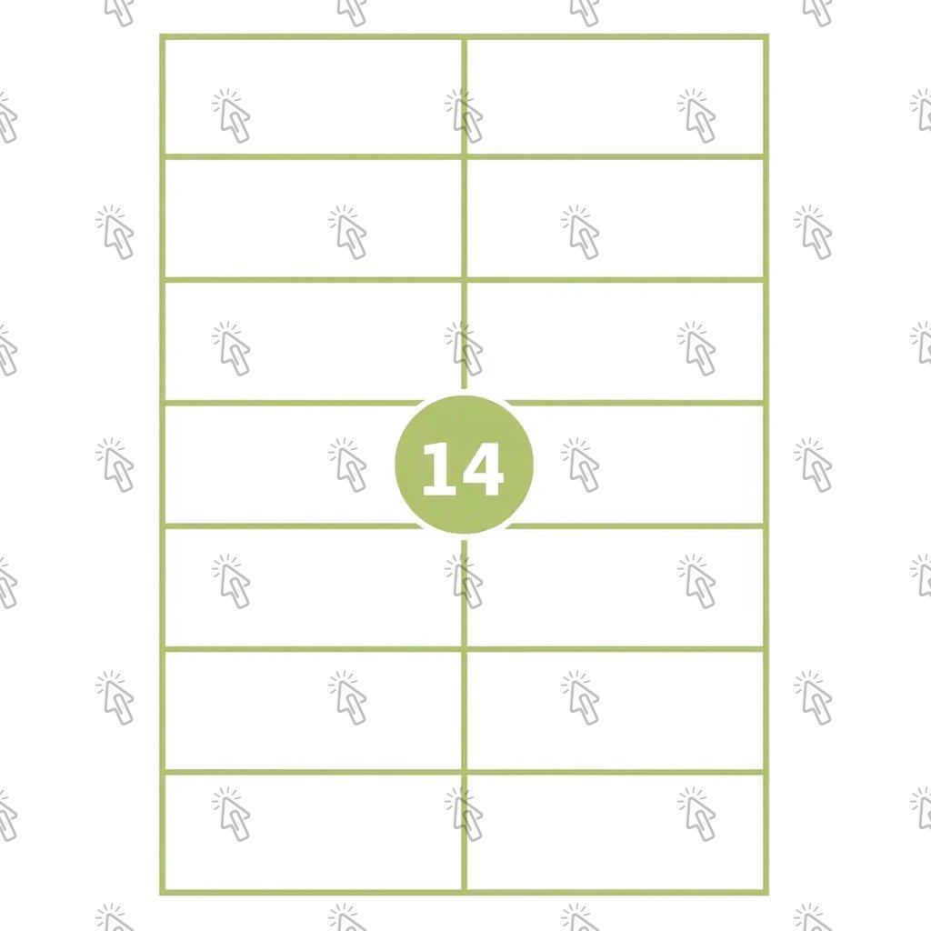 Queste etichette rettangolari, disponibili in confezioni da 100 fogli A4 (21×29,7 cm), ti permettono di utilizzare la stessa quantità di carta per ogni progetto. Ogni foglio contiene 14 etichette, quindi potrai facilmente stampare le informazioni necessarie senza sprechi. Il colore bianco è facile da leggere e combina bene con qualsiasi tipo di inchiostro o materiale di stampa.
