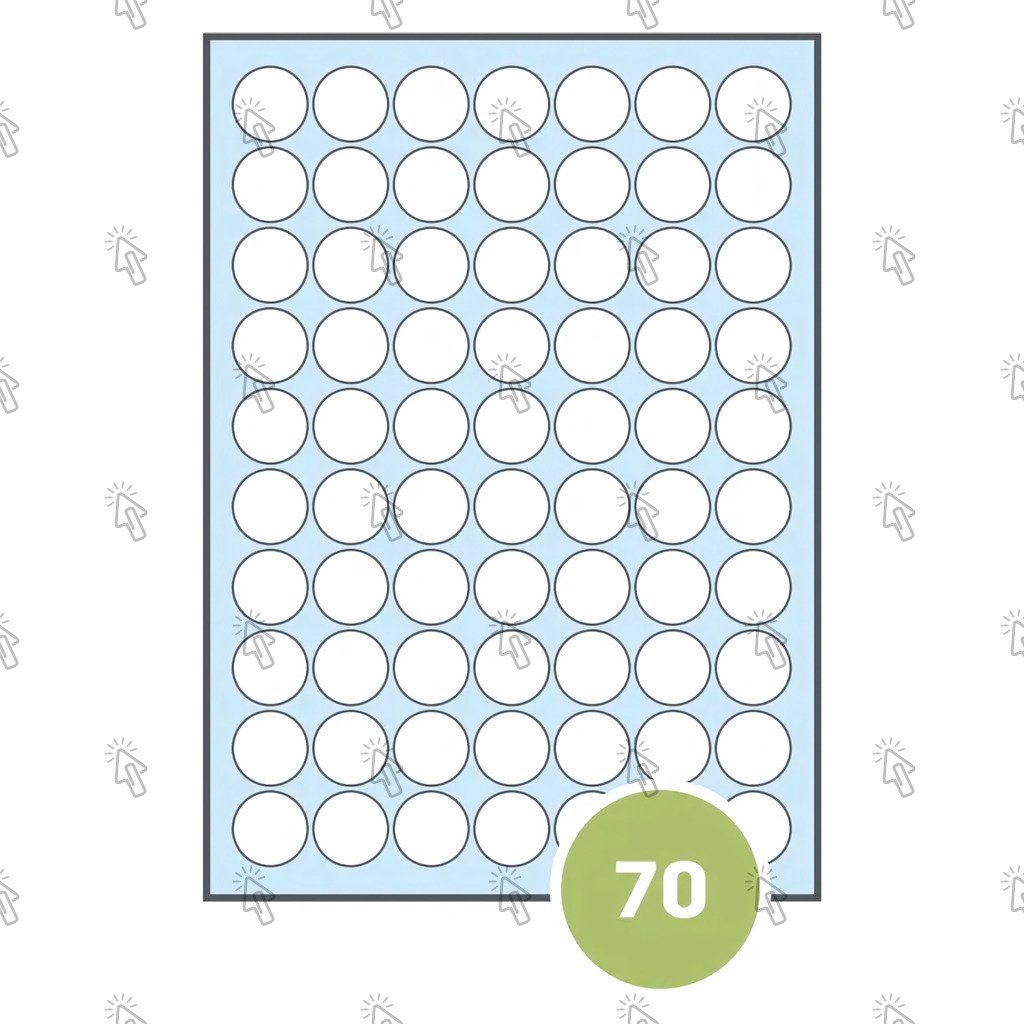 Queste etichette circolari, con diametro esterno di Ø 26 mm, possono essere utilizzate per identificare con precisione i pacchi, rendendo facile la loro gestione. Il formato A4 del foglio e le 70 etichette disponibili per ogni foglio ne fanno un prodotto molto conveniente.