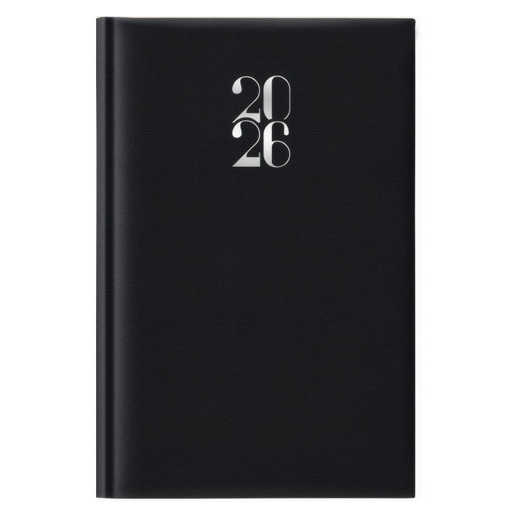 Agenda Giornaliera Notabene Gommato: formato 11 X 16.5 cm, colore nero, sabato e domenica abbinati, anno 2026