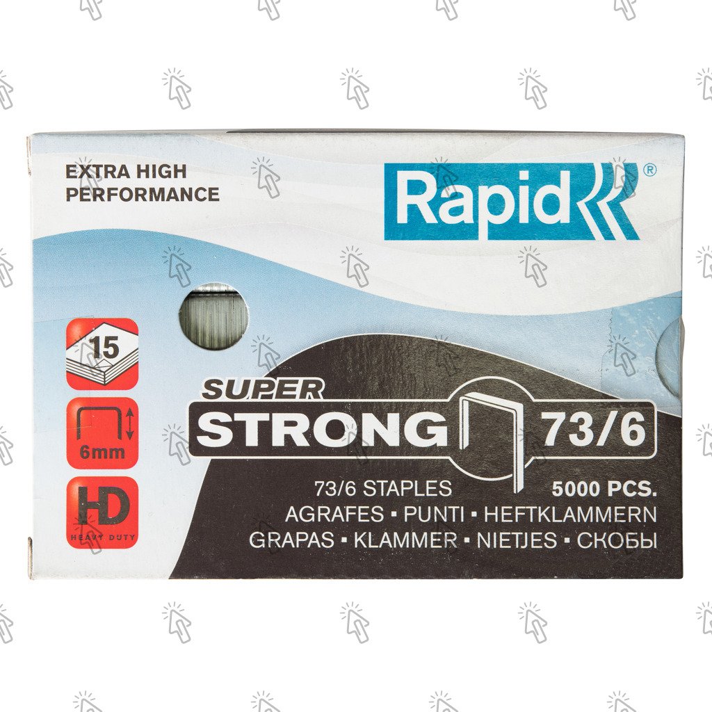 Punti metallici per cucitrici Rapid Super Strong: passo / gamba 73/6, capacità cucitura fogli 15 fogli, confezione da 5000 unità
