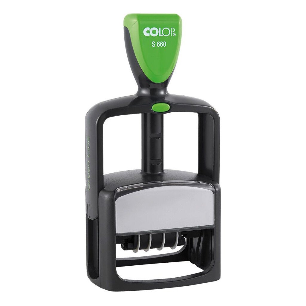 Timbro con datario autoinchiostrante • Colop S 660 Green Line •‣ | impronta 37 × 58 mm; testo personalizzabile | inchiostro nero |