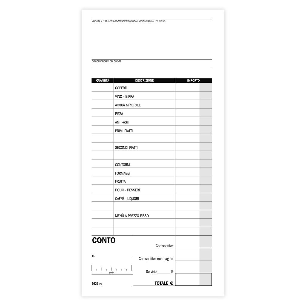 Blocco Data Ufficio conti ristorante – pizzerie – trattorie: foliazione 100 fogli, formato 21.5 X 10 cm