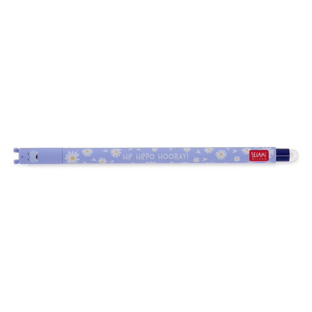 Penna a sfera “gel” cancellabile Legami: colore inchiostro blu, spessore del tratto 0.7 mm, fantasia Hippo
