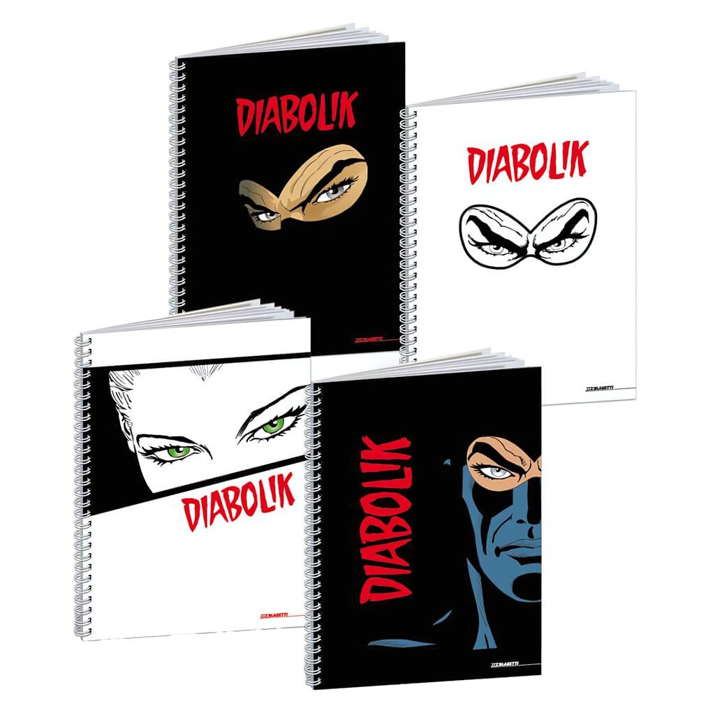 Quaderno Maxi Spiralato Blasetti Diabolik: formato 22.2 X 29.7 cm, rigatura rigatura 5M, foliazione 60 fogli, grammatura 80 g/mq, colore assortito