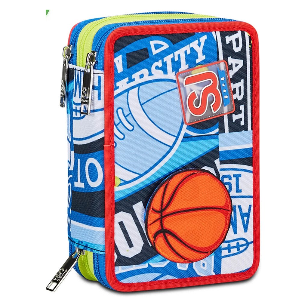 Astuccio 3 Zip Seven Big SJ Gang: fantasia RealBasket, materiale in tessuto