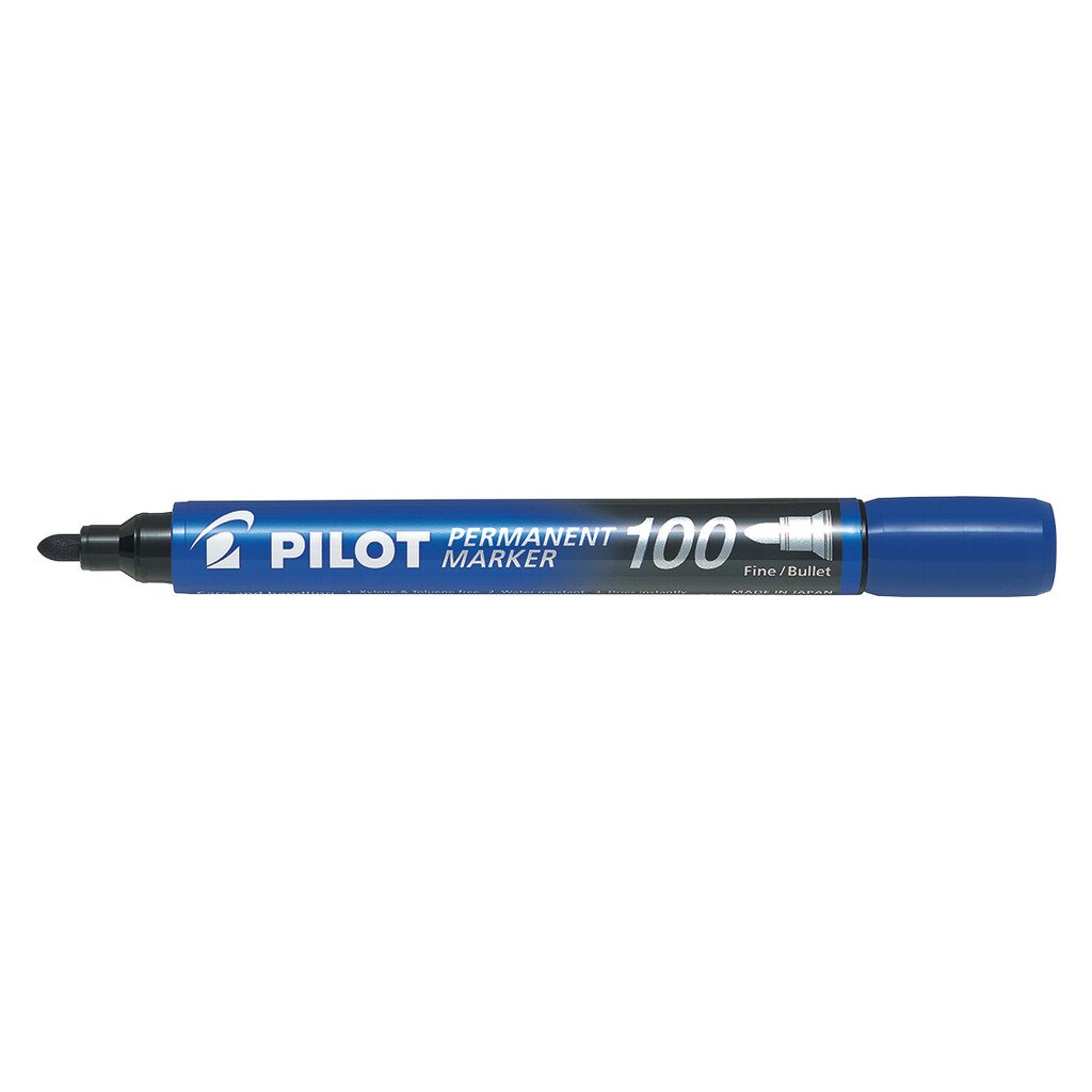 Marcatore a pennarello Pilot Permanent Marker 100 SCA-100: colore inchiostro blu, spessore del tratto 1 mm, confezione da 12 pezzi