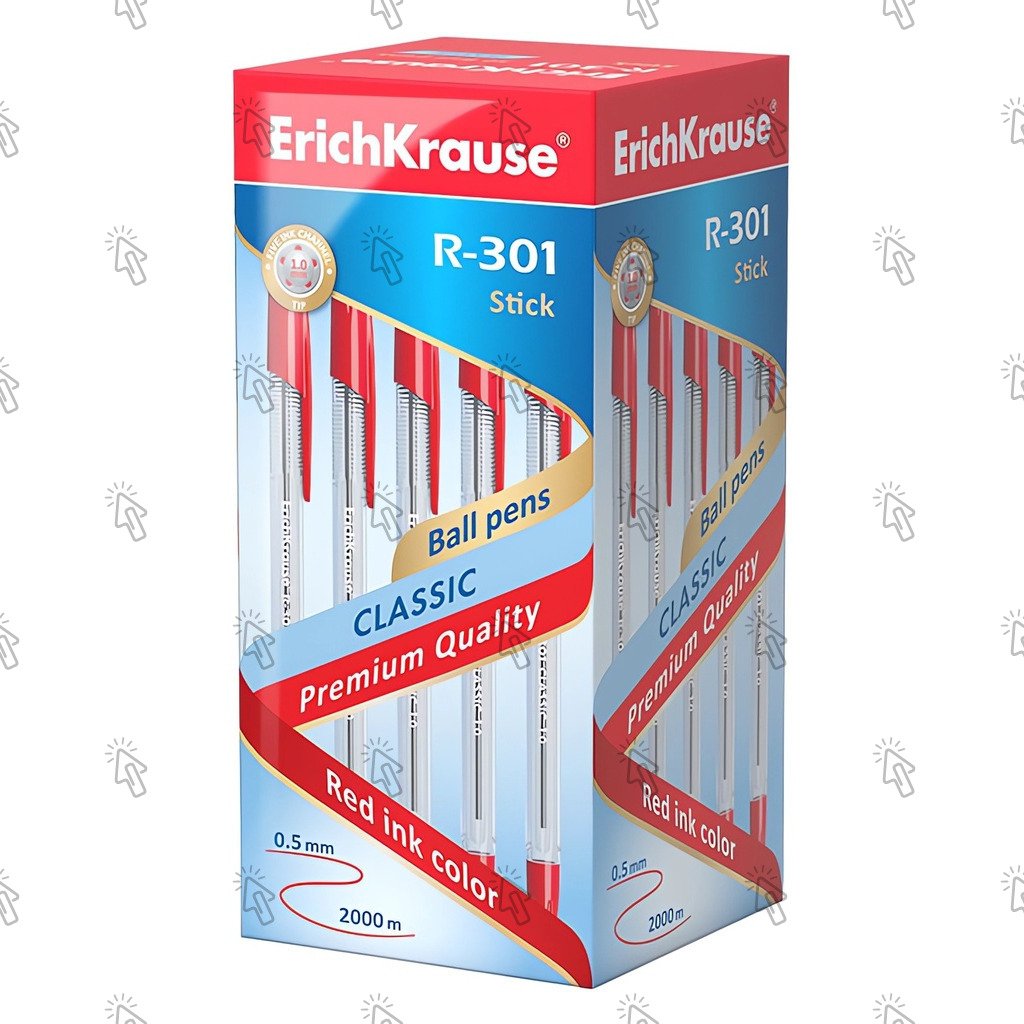 Penna a sfera Erich Krause R-301: colore inchiostro rosso, spessore del tratto 0.5 mm, confezione da 50 pezzi